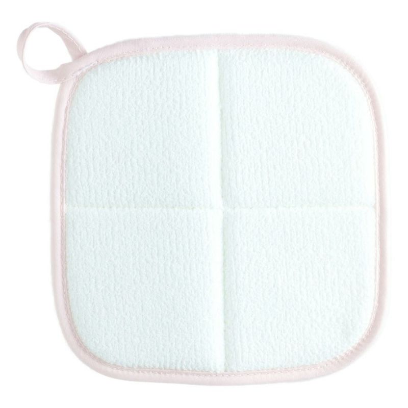 約5mmのスポンジをメリヤス生地で挟み、十字にミシン目を入れてあるので、たたんで小鼻の周り等細かいところもきれいにさっぱりと拭くことができます。